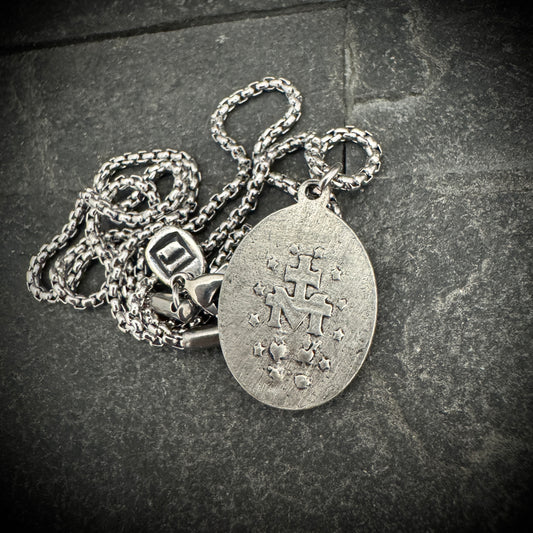 NOW in Sterling Silver, Men's necklace St. Christopher Wax Seal Medal w Compass, Unisex Jewelry, Chain length in 20 or 24 inches SS-017