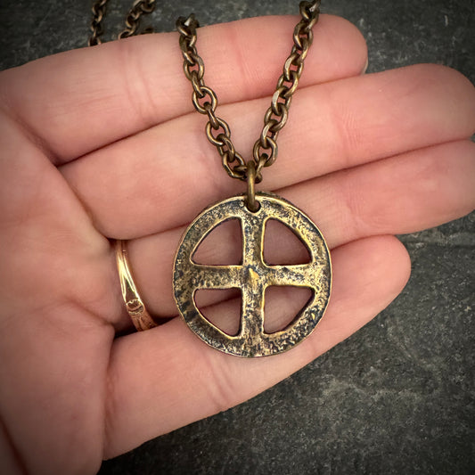 Men's Brass Necklace with Simple Bronze Cross, made from Ancient Original, Unisex Jewelry, BR-054