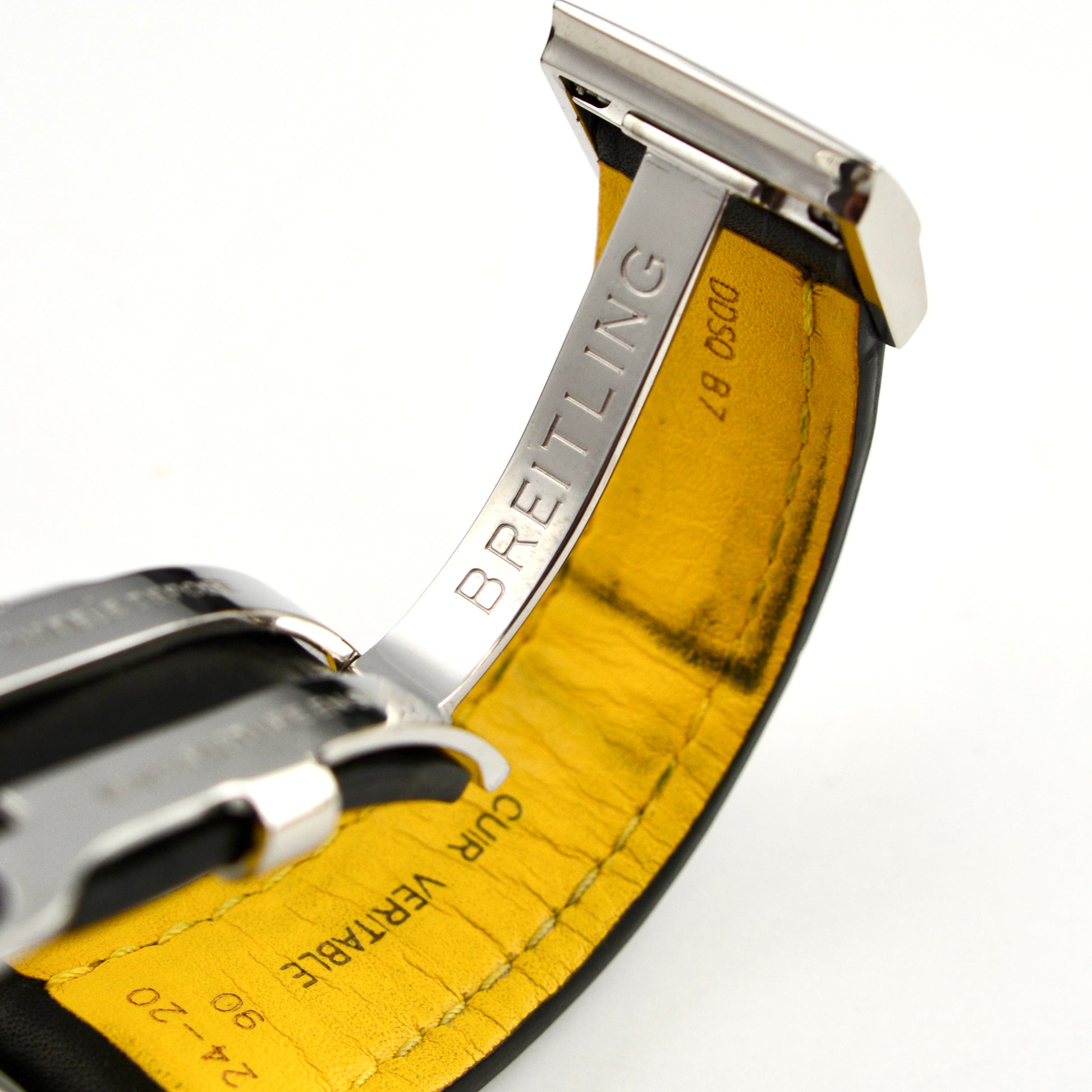 Powered by the Breitling Caliber 44B automatic movement (ETA 2892 base), it offers full chronograph functionality with 30-minute, 12-hour, and continuous seconds subdials, plus a big date complication and bi-directional rotating bezel.
