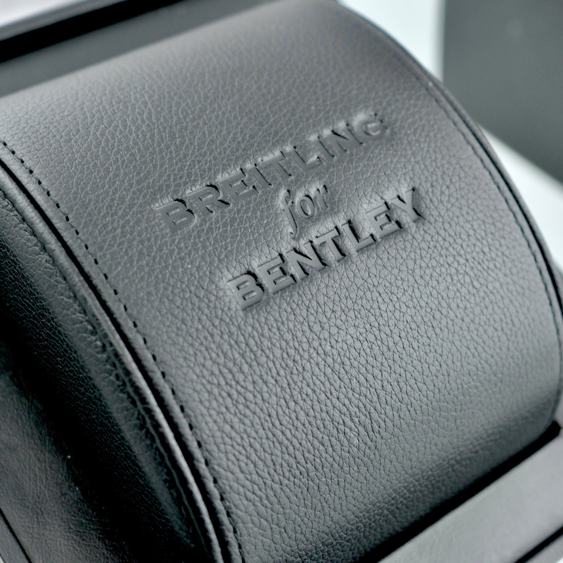 A bold expression of Breitling’s partnership with Bentley Motors, this A44364 Bentley Chronograph embodies precision engineering and refined luxury. The 49mm stainless-steel case features a signature knurled bezel inspired by Bentley’s dashboard detailing, complemented by a padded and stitched Breitling-signed leather strap with a deployant clasp.
