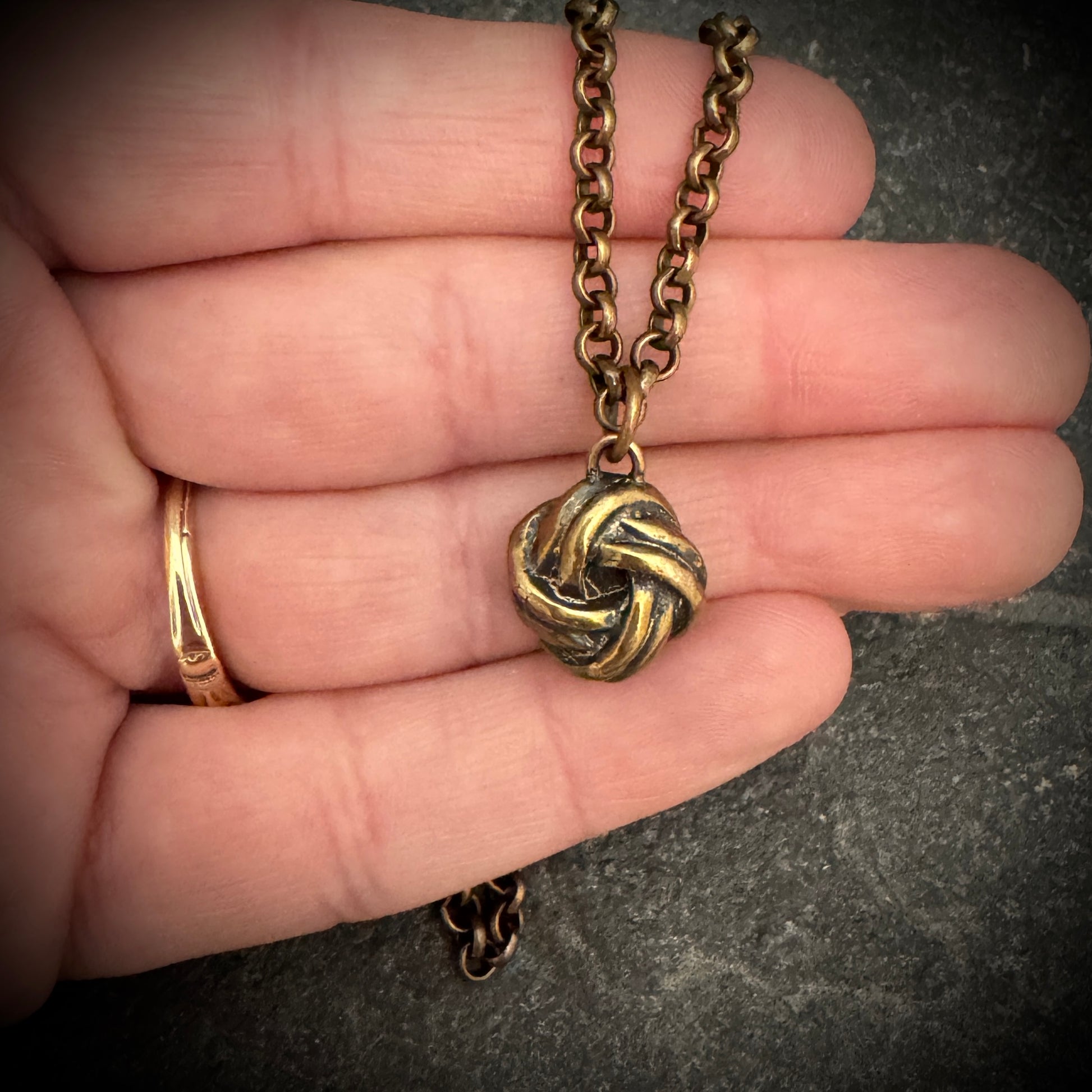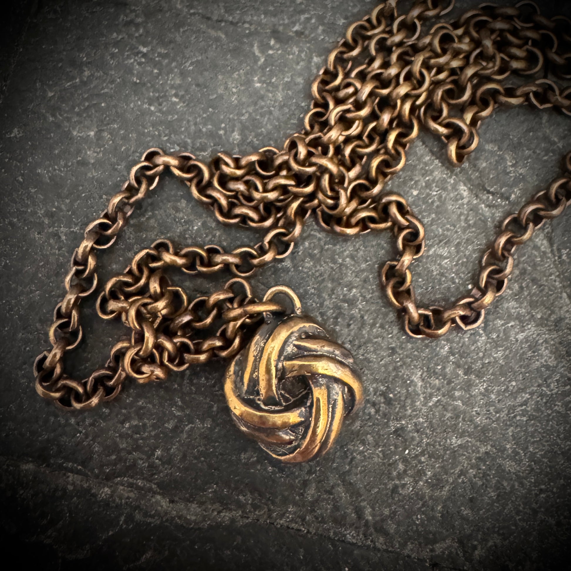 Intertwining tradition with timeless elegance, the Love Knot piece is a testament to everlasting bonds. Cast in lustrous bronze, the pendant showcases a complex Celtic knot, an ancient symbol of eternal love and life's interconnectedness. Suspended from a finely crafted bronze chain, this enchanting piece is a modern heirloom, imbued with historical significance and romantic charm.