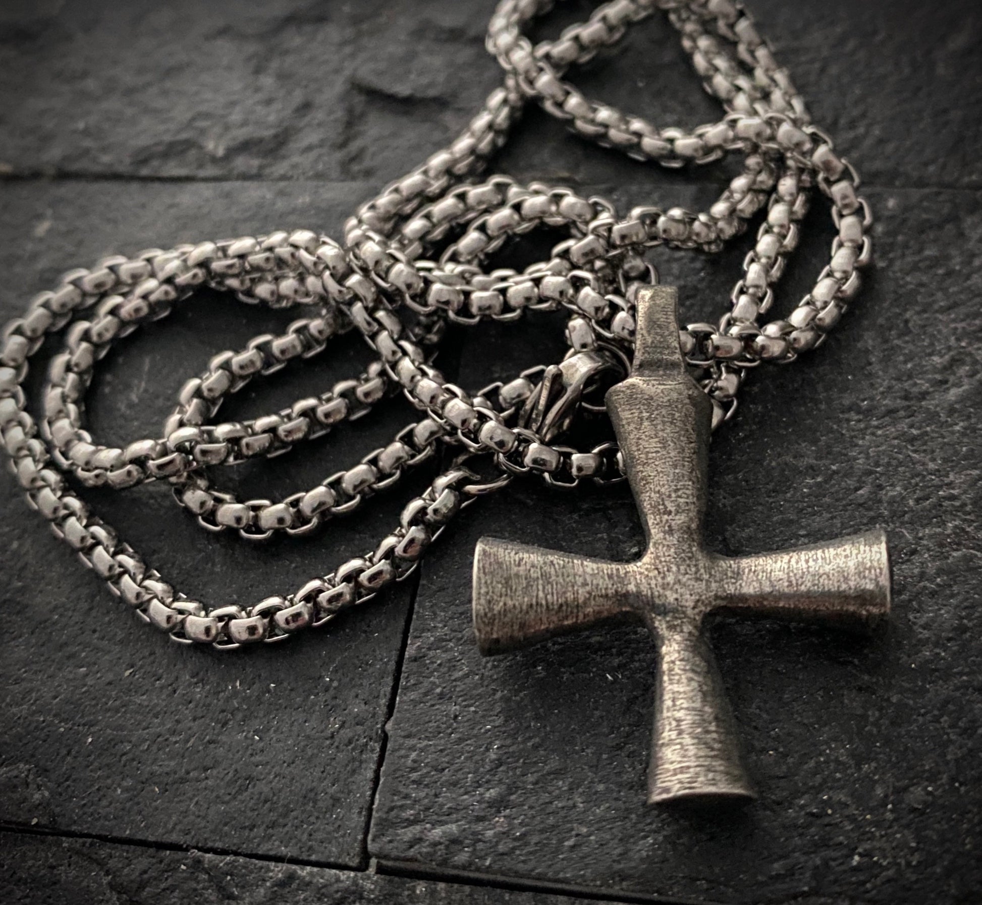 Men's Maltese style cross, Heavy pewter cross, unisex, Steel chain, Faith, Cross ST-019
