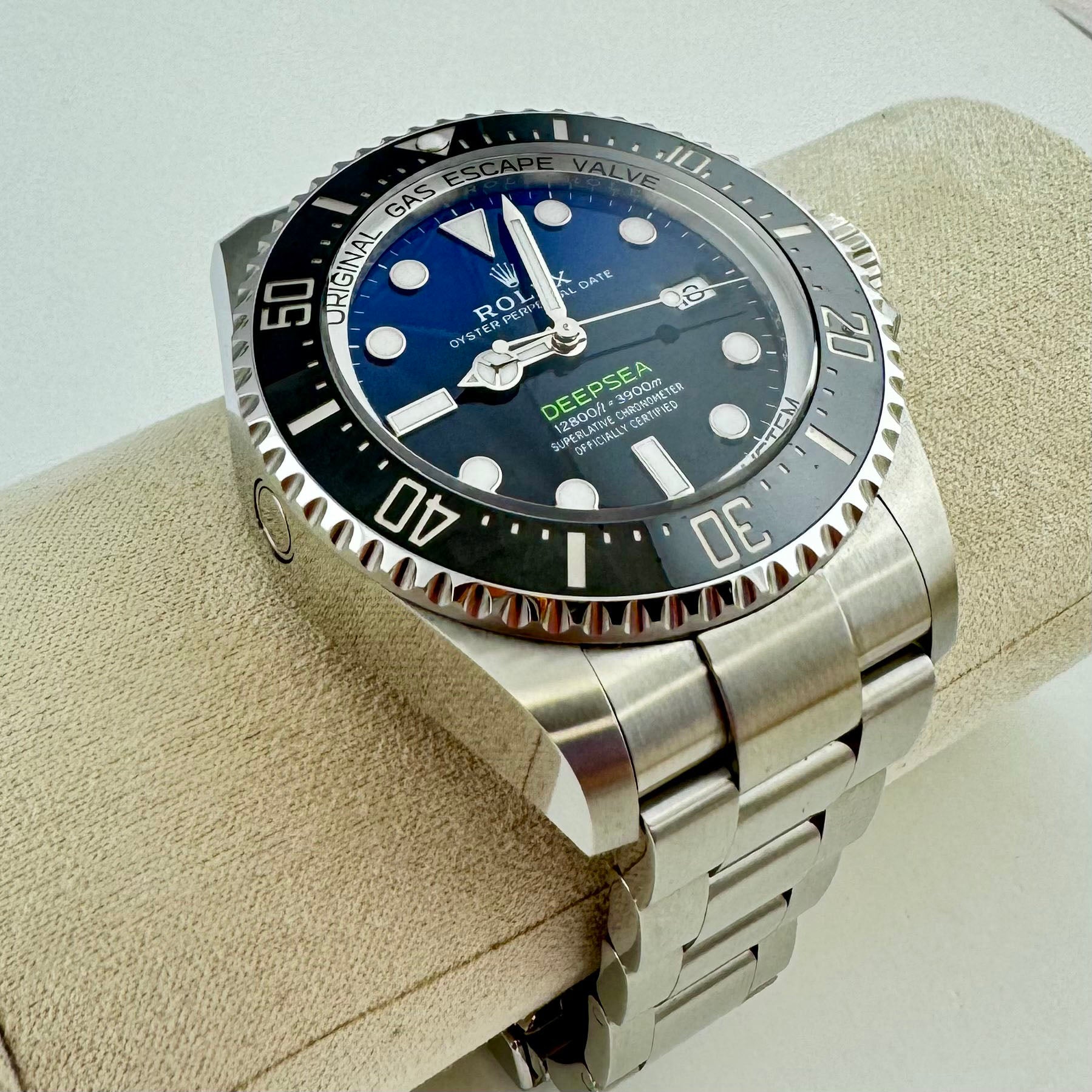 This example is practically new, worn only a few times for special occasions and retaining its factory finish and full complement of bracelet links. It looks and wears like brand new, ready for your wrist if you’re prepared for the unmistakable presence of a heavy-duty Rolex built for the extremes.