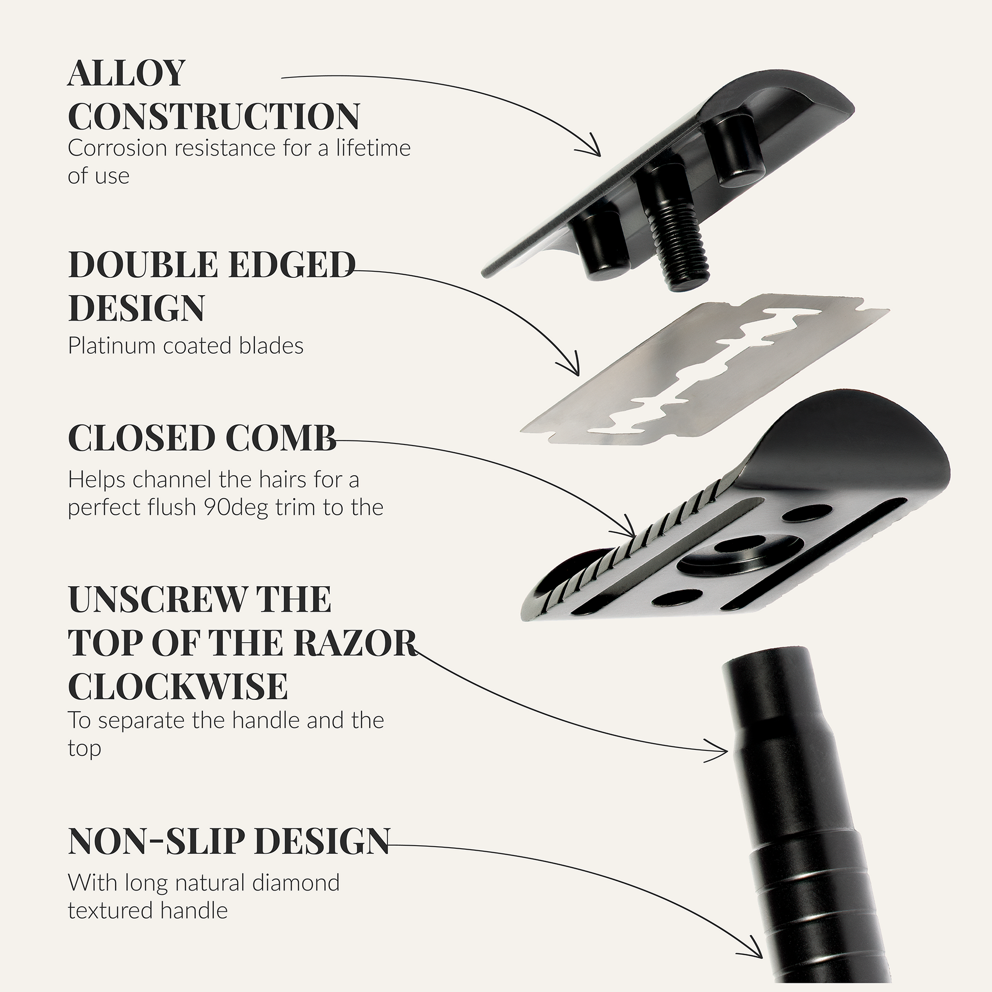 Weight-Balanced for Control – Solid alloy construction with perfectly balanced heft gives you total control for fewer nicks and a smoother glide.