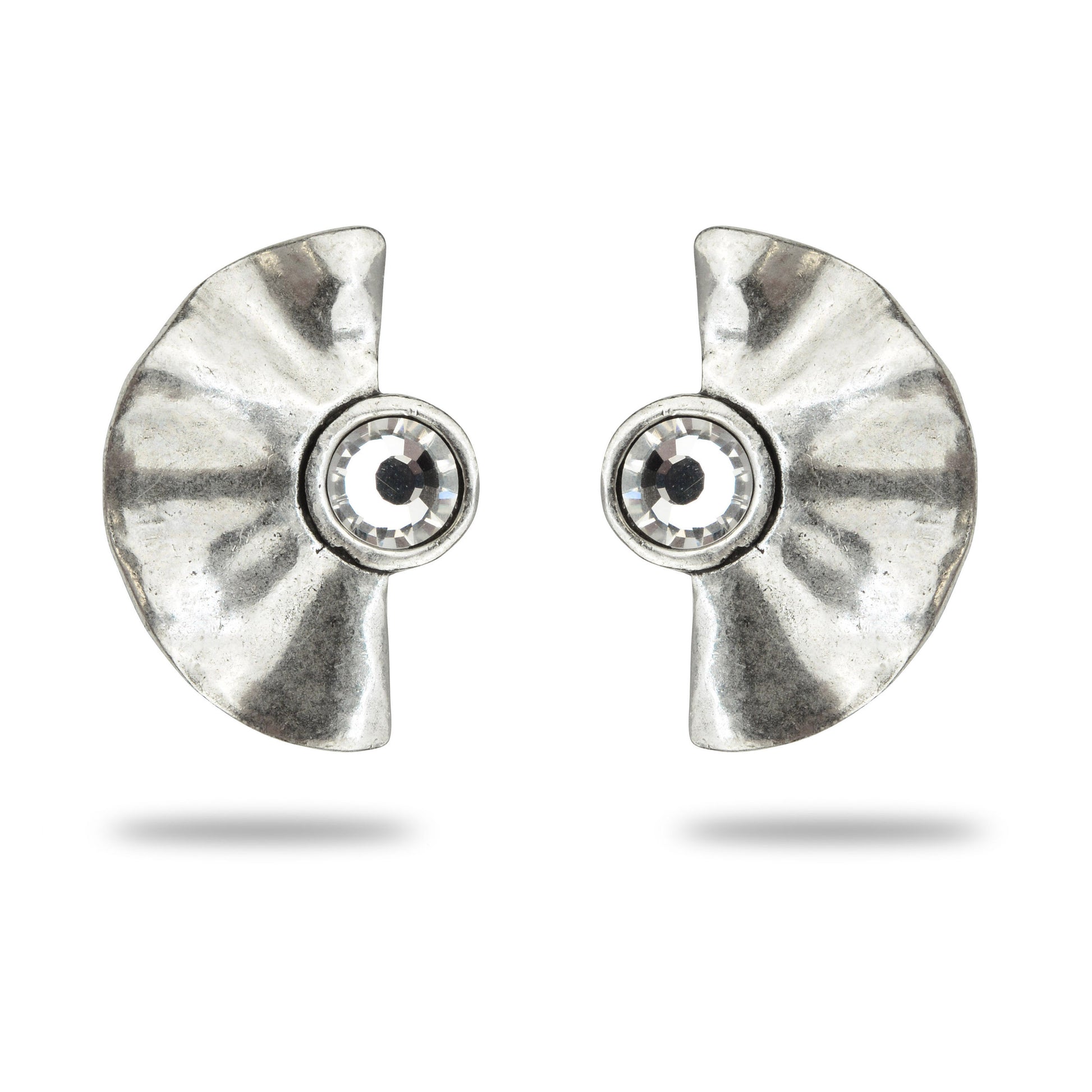 Explore celestial elegance with Johnny LTD's 'Saturn Earrings,' a truly unique addition to any jewelry collection. Inspired by the majesty of the sixth planet from the sun, these earrings feature a large, brilliant cubic zirconia at their core, mirroring the planet's radiant glow. The golden discs enfold the gemstone with an abstract representation of Saturn's iconic rings, finished with a soft sterling silver, brushed texture that captures the light as you move. These earrings are not just accessories; they are a conversation piece, marrying the wonders of the cosmos with the artistry of jewelry design.