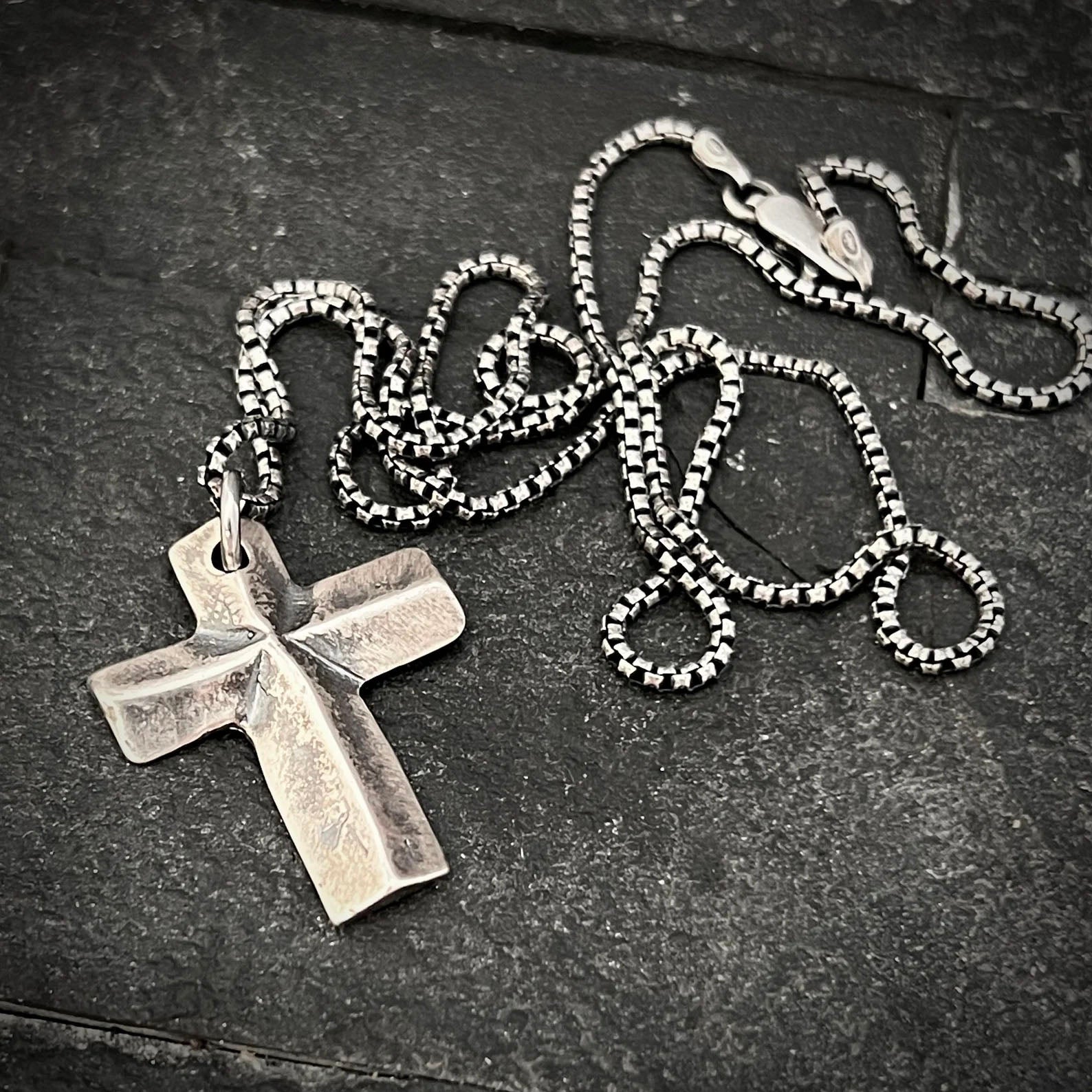 Sterling Silver Men's and Women's Cross Necklace, Simple Block Cross, Unisex Jewelry, SS-021