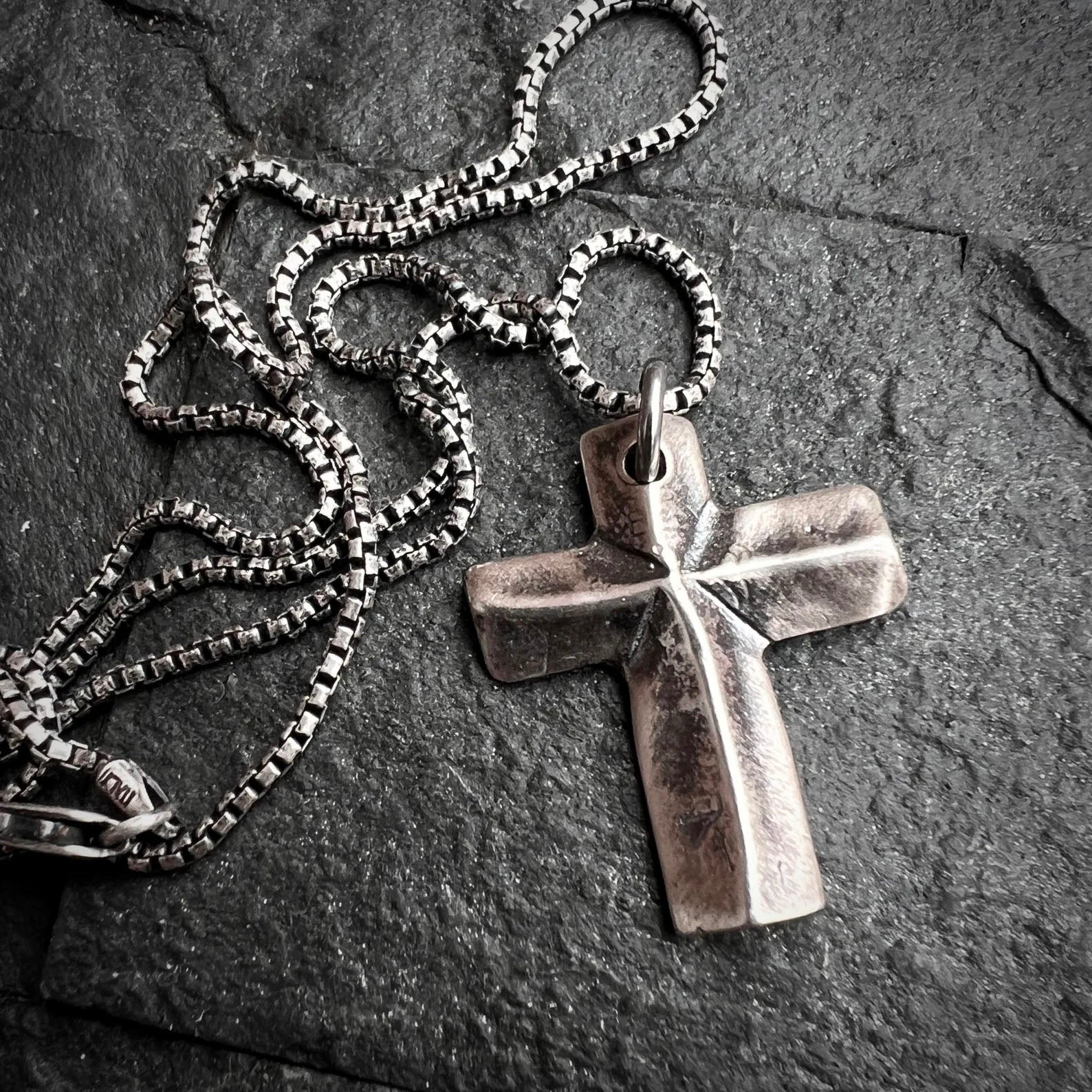 This is a simple cross that looks great on men and women. This necklace provides a unique piece for yourself or a loved one.