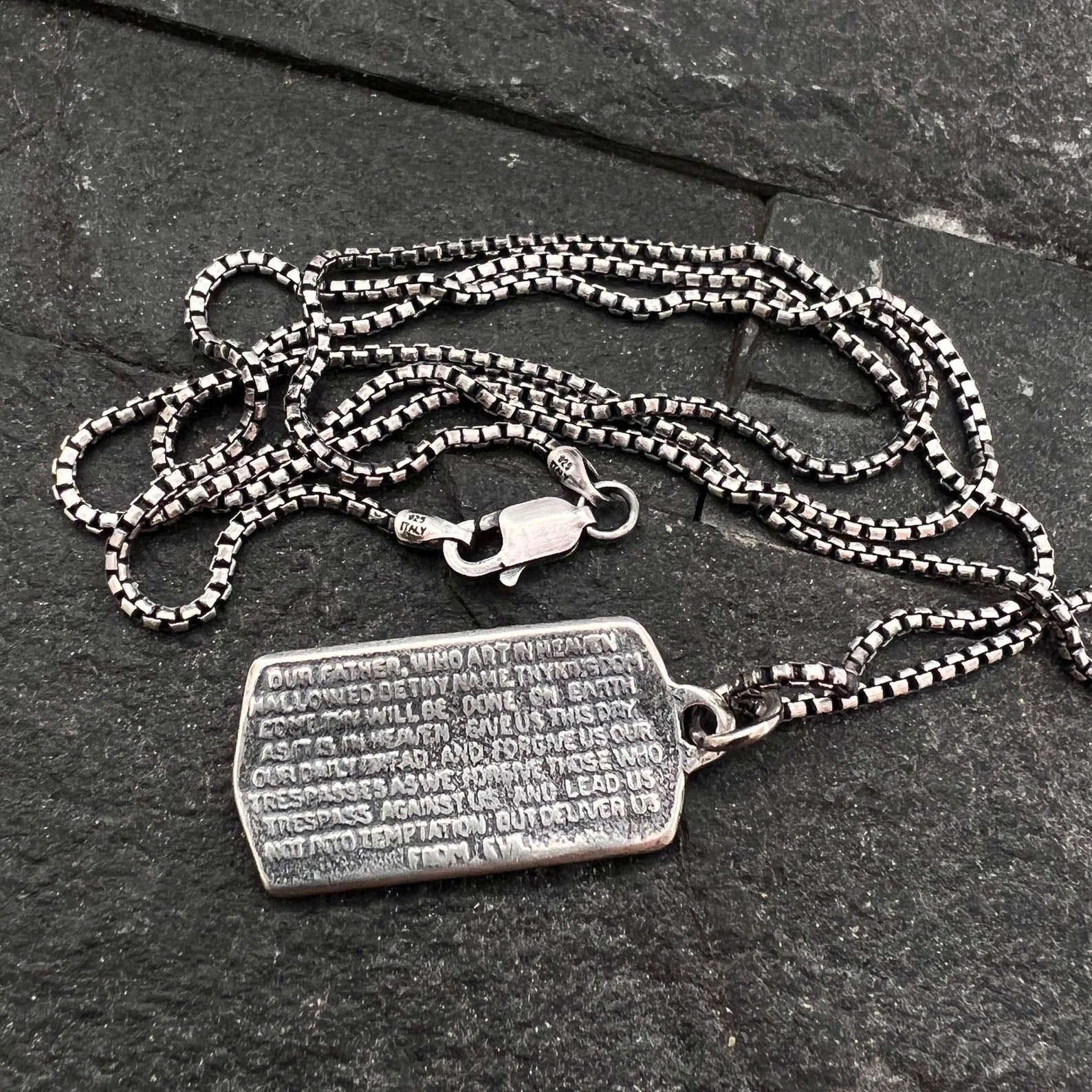 Sterling Silver, The Lord's Prayer Necklace, Men's or Women's Pendant with Cross, Unisex Jewelry Gift, Our Father, Faith, SS-019