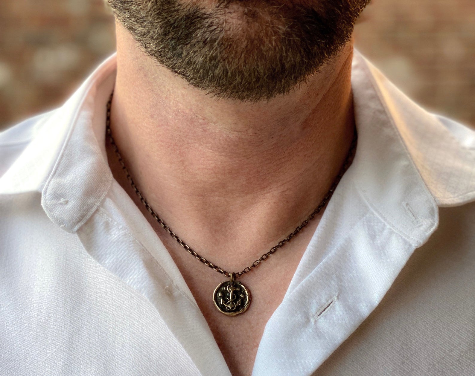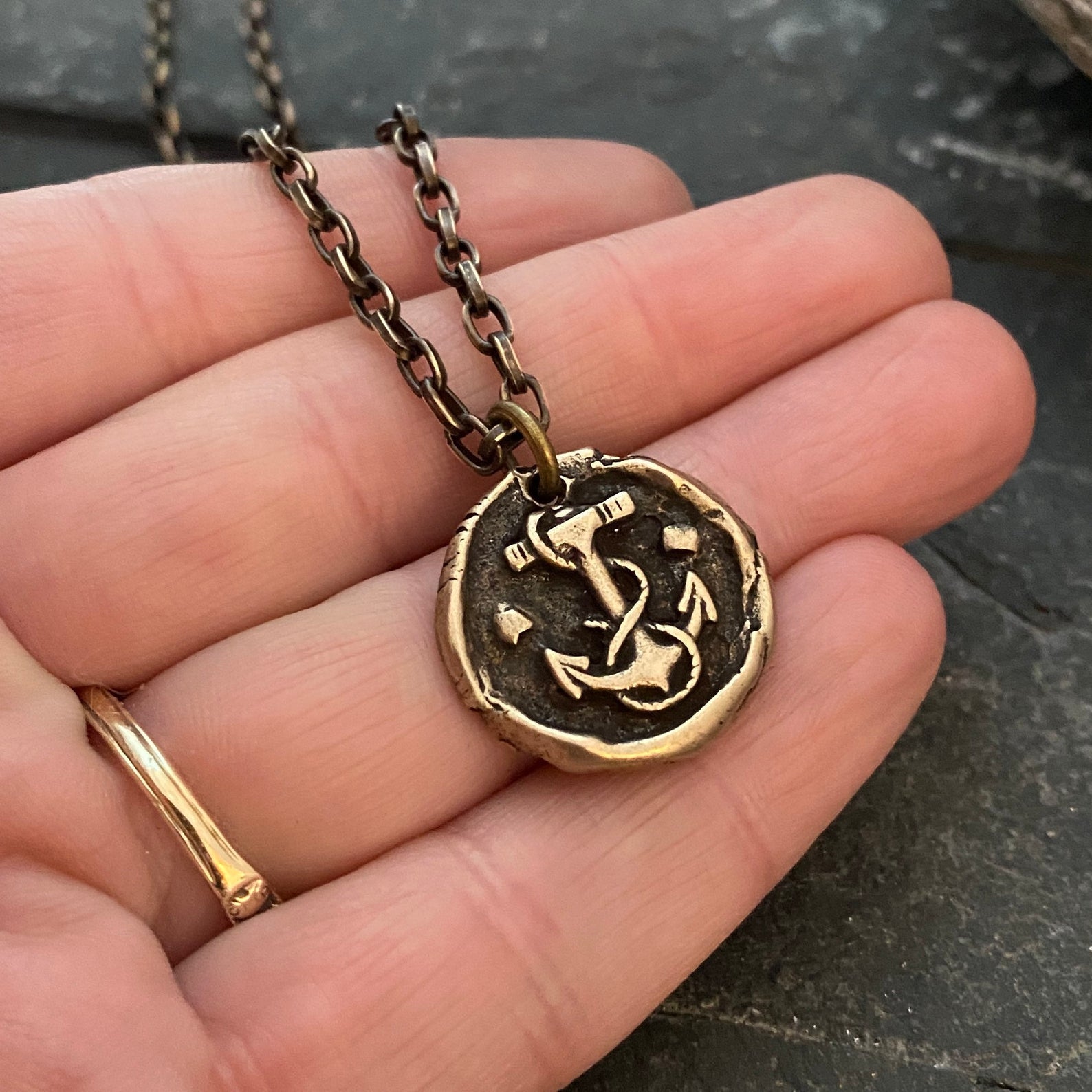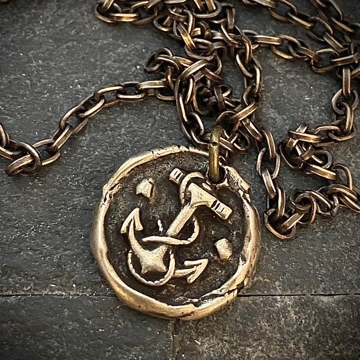 Wax Seal Nautical Anchor Necklace, Brass and Bronze Men's Unisex Ship Sea Jewelry, 20 or 24 Inch Rolo Chain, BR-048